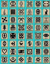 Los símbolos no solo tienen una función decorativa, también representan objetos que encapsulan mensajes sugerentes y que transmiten la sabiduría tradicional, aspectos de la vida o el medio ambiente. Hay muchos símbolos diferentes con significados diferentes, a menudo vinculados con refranes.