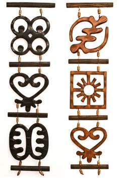 Cada símbolo tiene un nombre y un significado basado en los valores humanos universales como la familia, la integridad, la tolerancia, la armonía, la determinación, entre muchos otros. Sus nombres provienen de la lengua de la gente Ashante, Twi.