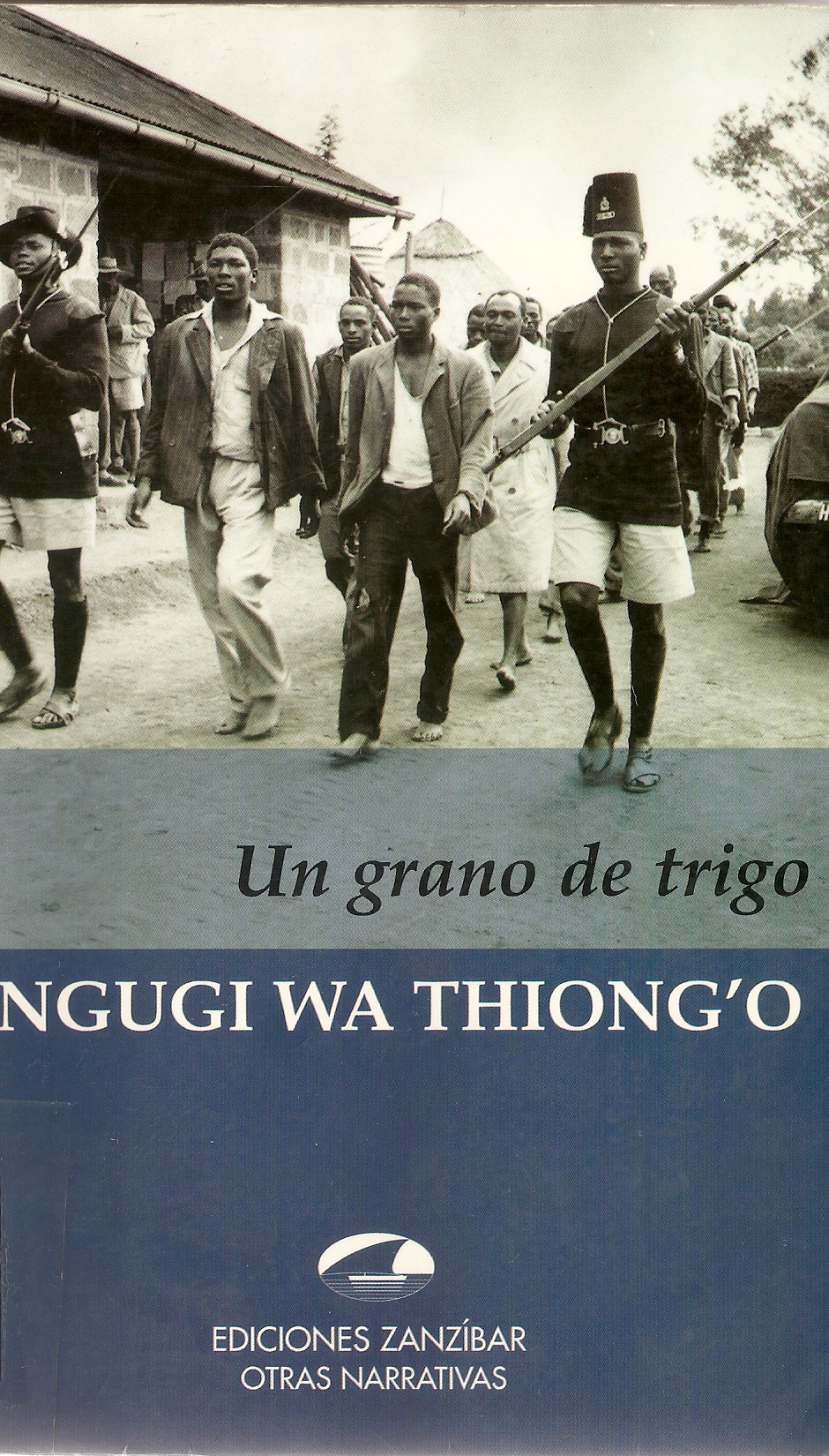 Un grano de trigo, publicada en 1967, cuyo título se debe a una frase de la Primera epístola a los corintios («¡Necio! Lo que tú siembras no revive si no muere. Y lo que tú siembras no es el cuerpo que va a brotar, sino un simple grano, de trigo por ejemplo o de alguna otra planta»), es una novela escrita antes de su pena de prisión y usando el idioma del Imperio, el inglés, al que después renunciaría. Con una técnica de flashback, unida a una forma de ensamblar la narración, con la que logra que el relato de uno de los personajes se complemente y se redimensione, se vuelva a narrar desde la perspectiva de otro, la novela se desarrolla a lo largo de cuatro días que culminan con el Uhuru (independencia de Kenia, 12 diciembre 1963), que se celebró en el estadio de Nairobi, ante gentes de todo el país y de todo el mundo. Se terminó el estado de emergencia que desencadenó la respuesta del gobierno colonial al levantamiento de los guerrilleros Mau Mau y en Thabai, un pueblo que apenas había cambiado desde 1955 «cuando se erigieron a toda prisa tejados de paja y paredes de barro, mientras la espada del hombre blanco colgaba peligrosamente sobre el cuello de la gente para protegerlos de sus hermanos del bosque» (pág.25), también se preparan para la celebración y se busca a un héroe (Mugo) que hable ante todos ellos.