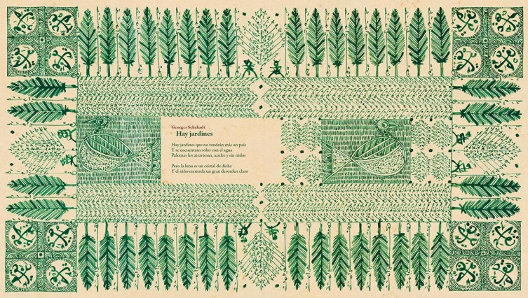 A caballo, se encuentra Georges Schehadé que si bien nació en Egipto, creció en Líbano. Descubierto por el guadalupeño Saint John Perse, sus poemas han sido traducidos por Octavio Paz. Además, Schehadé comenzó editando su obra poética “originalmente en pequeñas y bellísimas plaquettes de glm (impresas a mano en su propia impresora por Guy Levis Mano, ese auténtico y legendario poeta de la edición), que luego comenzarían a ser reunidas en un solo volumen por Gallimard” lo cual le une aún más con esa manera de entender los libros como algo bello, hermoso en si mismo, al igual que Prodigios.