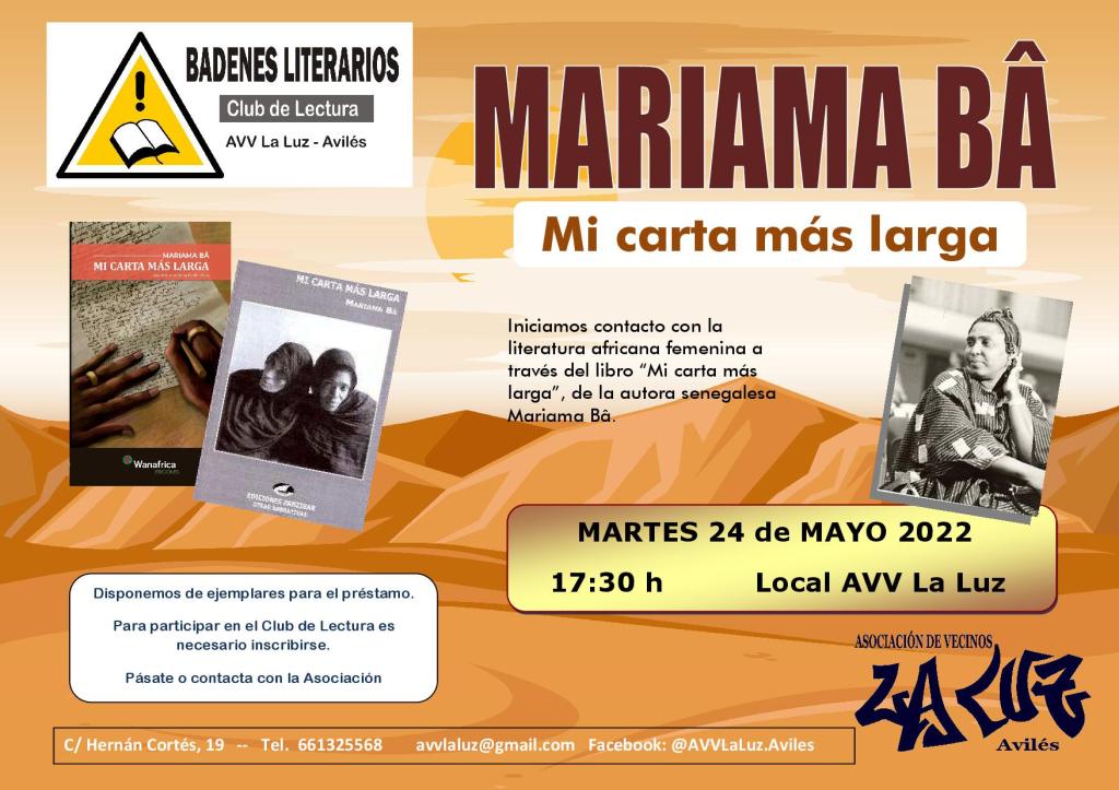 AVILÉS:AAVV LA LUZ. Club de lectura Badenes Literarios: «Mi carta más larga», 24/05/22. 17:30