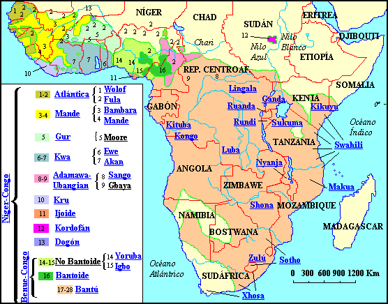 La familia níger-congoleña es una de las agrupaciones más grandes del mundo, después de la austronésica. Se extiende desde Senegal hasta Kenia y el sur del continente. Se divide en los siguientes grupos: